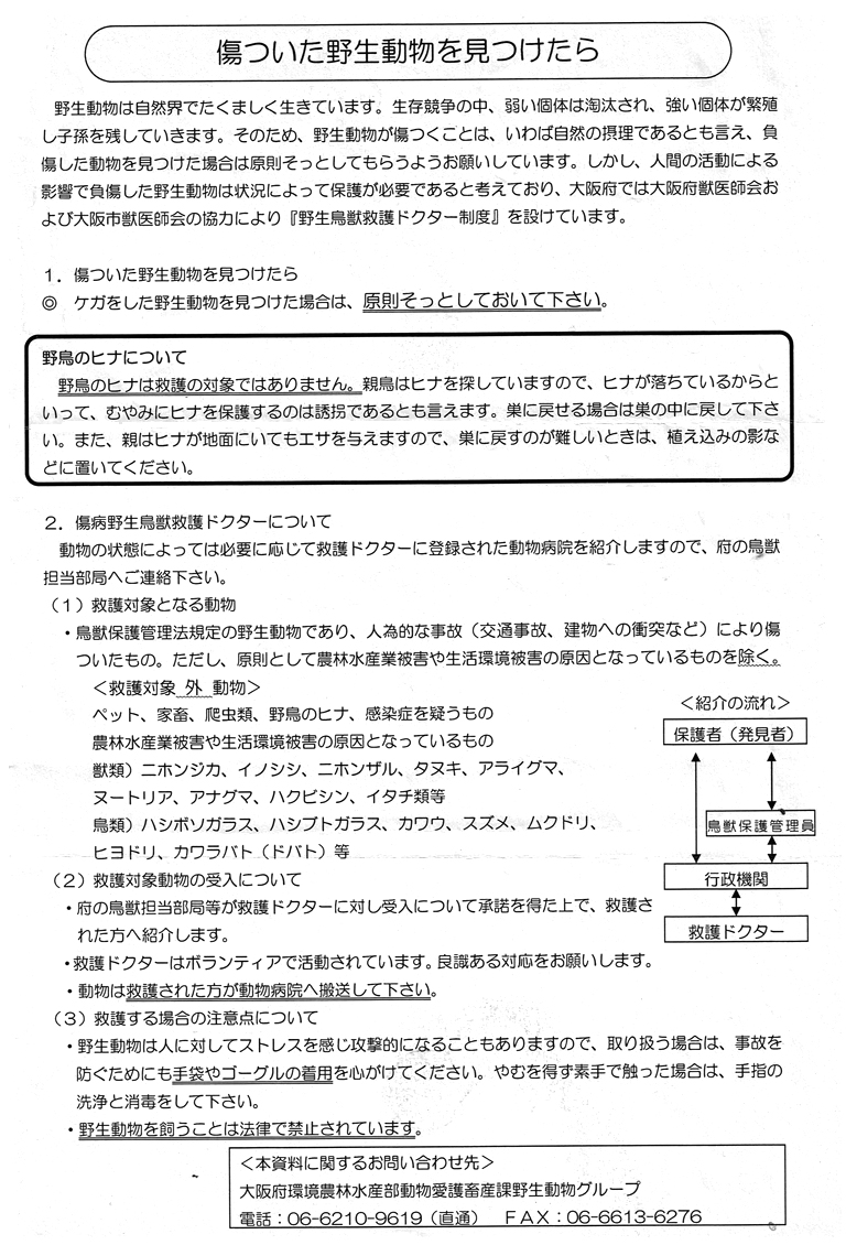 ● 大阪府傷病野生鳥獣救護ドクター指定医です。